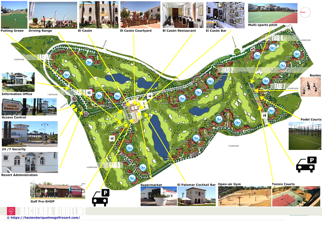 Naast de golf- en recreatiefaciliteiten op het Hacienda Riquelme Golf Resort,is er ook een supermarkt en de mogelijkheid voor autoverhuur en kinderopvang.
