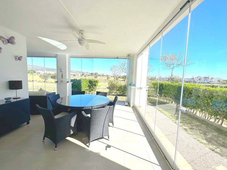 Welkom bij ons mooie 3-kamer appartement op de begane grond in het beveiligde golfcomplex van Hacienda Riquelme.