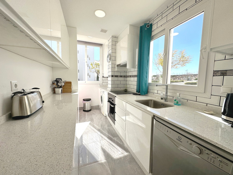 Dit prachtige appartement heeft een keuken die onlangs is gerenoveerd en voorzien is van de nieuwste moderne apparatuur, waaronder een kookplaat, magnetron, koffiemachine, vaatwasser en wasmachine.